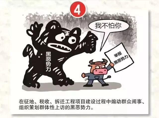 4.在征地、租地、拆遷、工程建設、信訪等過程中煽動鬧事的黑惡勢力;
