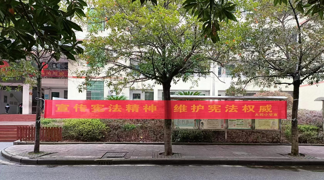 我校領(lǐng)導(dǎo)高度重視此項(xiàng)活動(dòng)的開展,利用橫幅標(biāo)語以及教學(xué)樓前的電子屏滾動(dòng)播放“弘揚(yáng)憲法精神 ,維護(hù)憲法威”、“堅(jiān)持依法治教、依法治校,建設(shè)社會(huì)主義法制校園”、“貫徹黨的二十大,全面推進(jìn)依法治國”等宣傳標(biāo)語,營造濃郁的憲法宣傳氛圍。