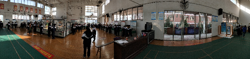 來倒明德小學后,同學們有序排隊參觀。